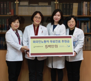 전달한 후원금은 매년 병원약사들의 회비 10%를 별도 적립해 모인 사회봉사기금 중 일부로 회원들의 소중한 정성과 마음이 담겨있다.