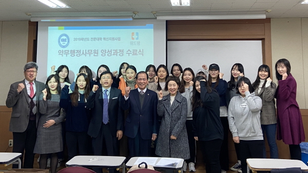 한양여자대학교 행정실무과(학과장 하상군)와 약국체인 (주)위드팜(대표이사 이상민)이 약국 직원 전문교육으로 진행하고 있는 국내 최초 대학 내 특성화과정인 '약무행정사무원 양성과정'이 제3기 수료생을 배출했다.