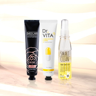 충분한 수분력과 보습력으로 손을 효과적으로 보호해 줄 수 있는 ‘메디 랩 블랙로즈 블로썸 퍼퓸 핸드크림’, ‘닥터비타 비타민 캡슐 에센스 핸드 크림’, ‘라임&브라운 핸드버터’를 사용해 건조함을 방지하자.
