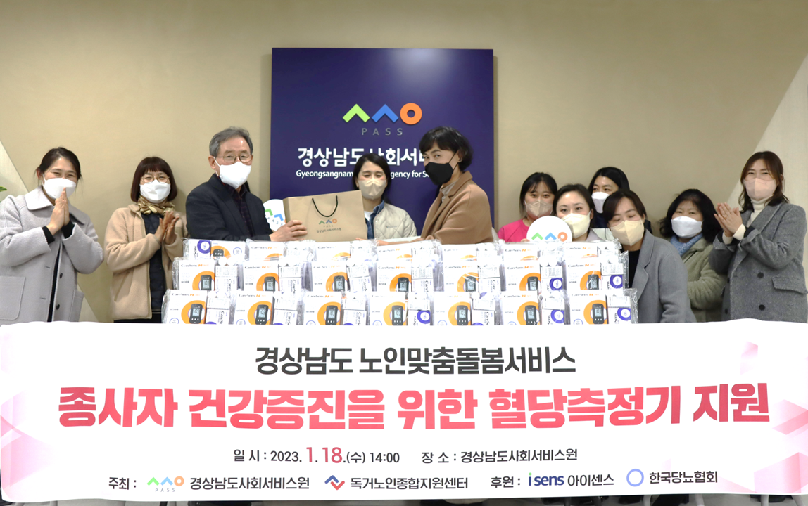 한국당뇨협회는 정부의 노인맞춤돌봄서비스 사업을 수행하고 있는 독거노인종합지원센터에 혈당측정기 1천 800대를 기부했다고 20일 밝혔다.