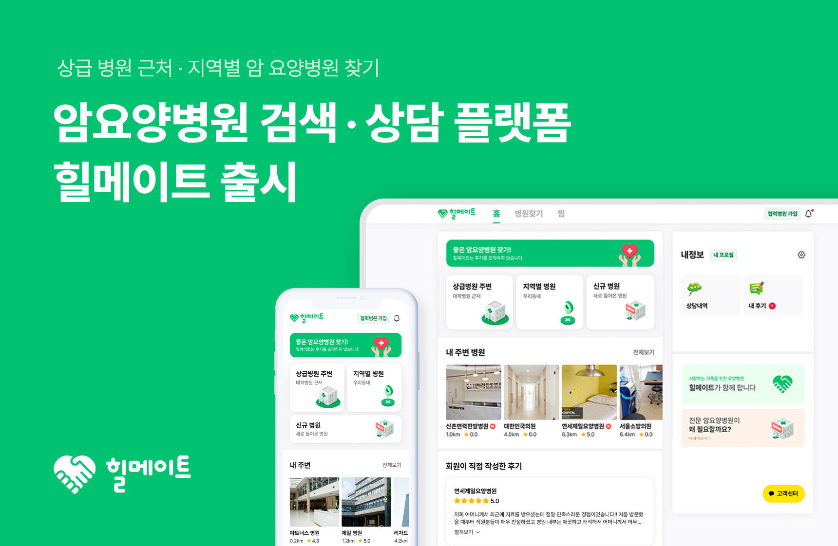 생활/편의 플랫폼 기업 오퍼니티㈜가 전국 암 요양병원을 검색하고 상담 예약할 수 있는 플랫폼 ‘힐메이트’ 서비스를 최근 출시했다.