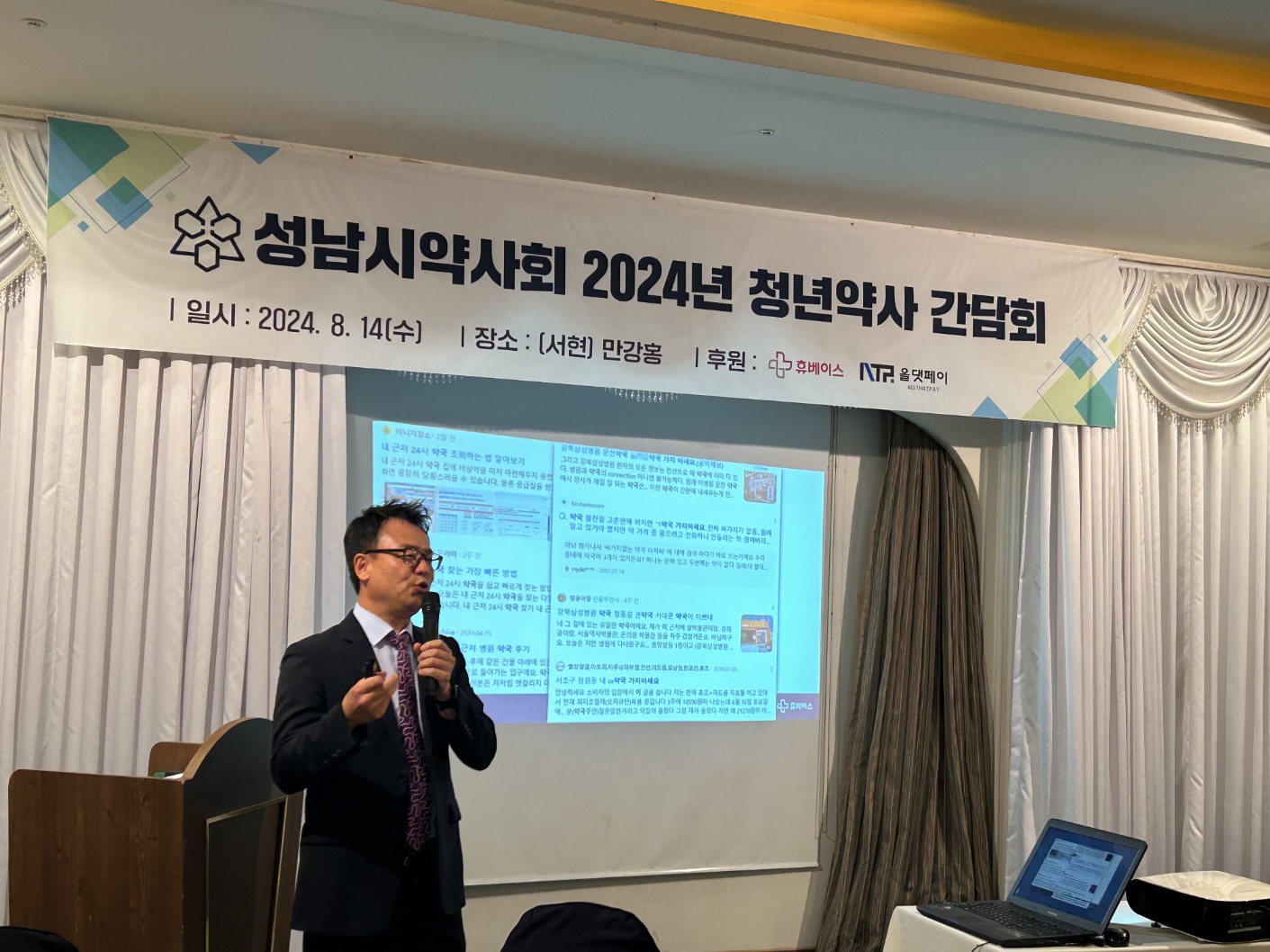 약국체인 휴베이스 김현익 대표가 지역 약사회에서 연이은 약국경영 특강에 나섰다.