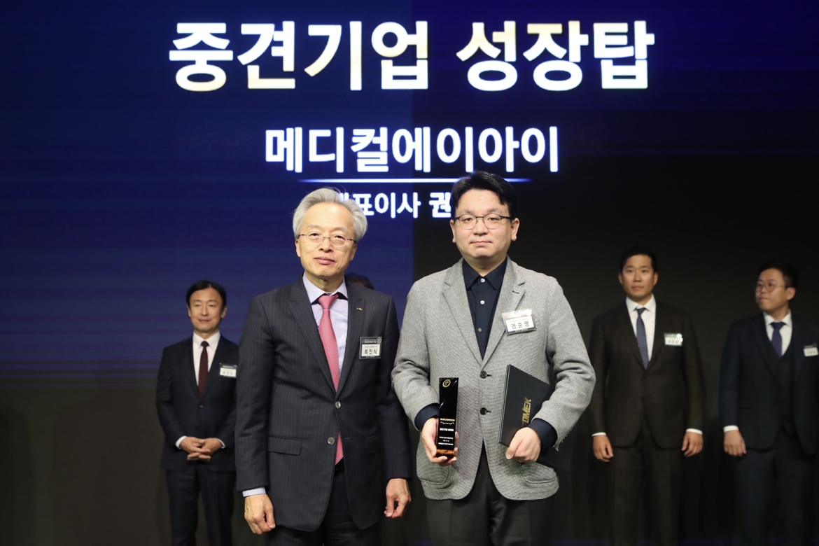 중견기업 성장탑은 지속적인 혁신을 통해 중소기업에서 중견기업으로 성장한 우수 기업을 선정하여 수여하는 상이다. 이날 기념식에서 메디컬에이아이를 포함해 총 8개 기업이 중견기업 성장탑을 전달받았다.