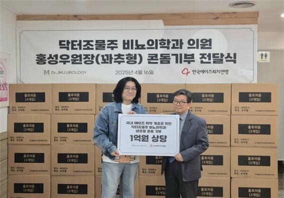 닥터조물주 비뇨의학과 홍성우 원장(일명 '꽈추형')이 지난 16일 국내 에이즈 취약계층 위해 한국에이즈퇴치연맹에 1억원 상당 콘돔을 기부했다.