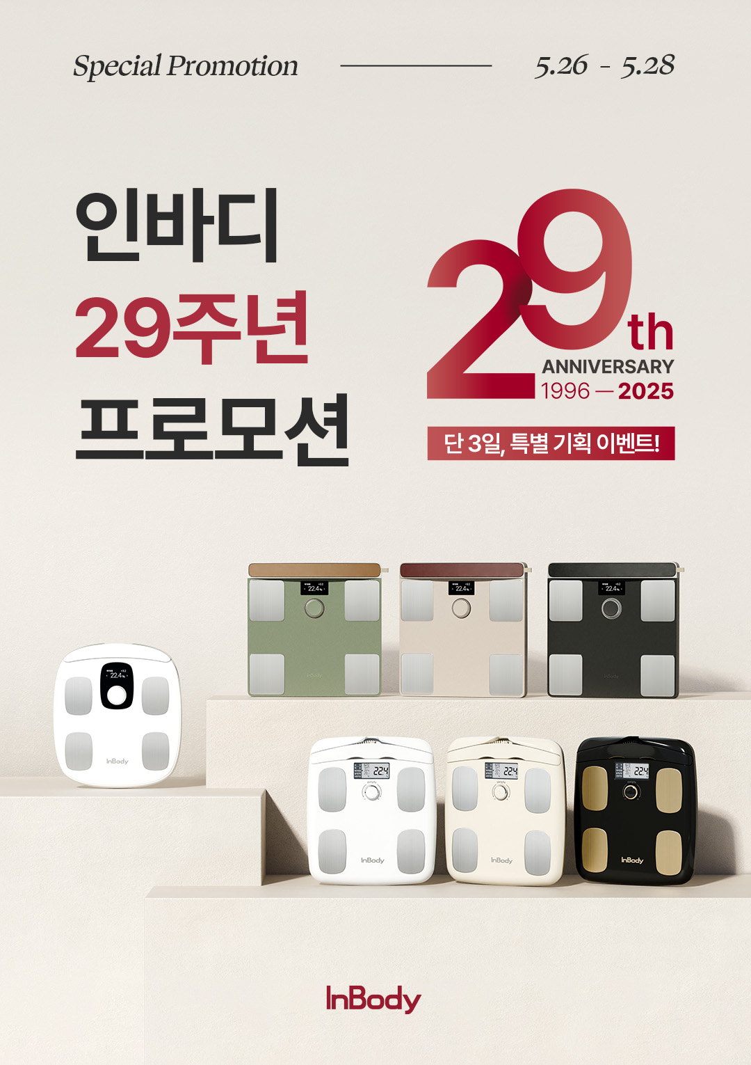 헬스케어 기업 ㈜인바디(대표이사 차기철)가 창립 29주년을 맞아 ‘인바디다이얼 프로모션’을 오는 26일부터 28일까지 3일간 진행한다.