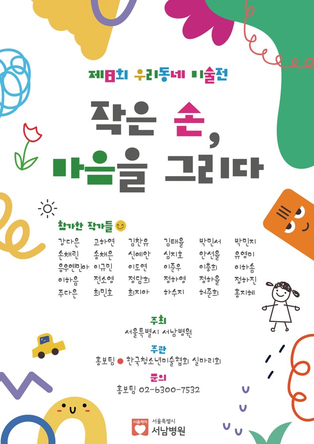 서울특별시 서남병원(병원장 표창해)은 지역 예술인과 주민, 환자, 의료진 간의 문화적 소통과 공감을 확대하기 위해 제8회 우리 동네 미술전 ‘작은 손, 마음을 그리다’ 展을 개최하고, 지난 11월 3일 정식 오픈했다.