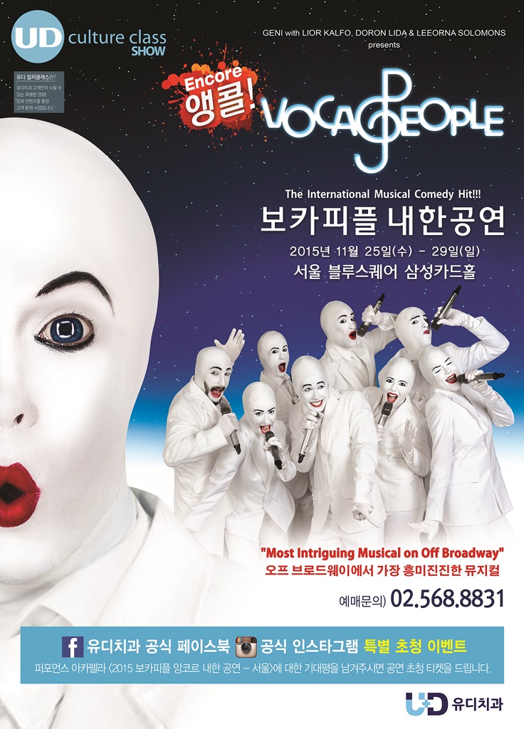 유디치과는 퍼포먼스 아카펠라 뮤지컬 ‘보카피플 내한공연’ 특별 초청 이벤트를 유디치과 페이스북과 인스타그램을 통해 내달 1일까지 실시한다.
