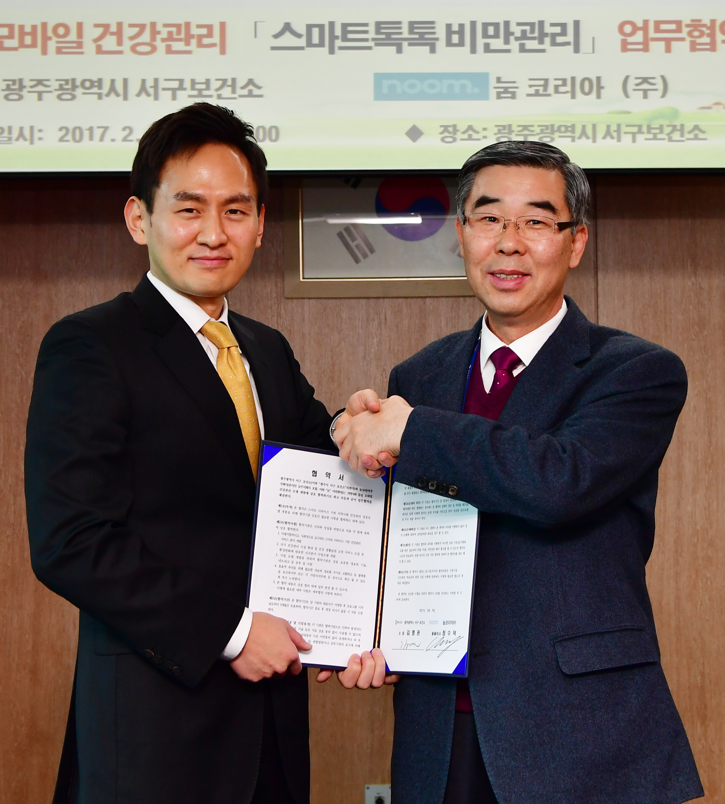전 세계 4,600만 명의 회원을 보유하고 있는 모바일 헬스케어 서비스 회사 눔(Noom Inc. 대표 정세주)은 지난 9일 광주광역시 서구 보건소와 모바일을 활용한 건강관리 프로그램을 진행하기 위한 업무협약을 서구 보건소에서 체결했다고 10일 밝혔다.