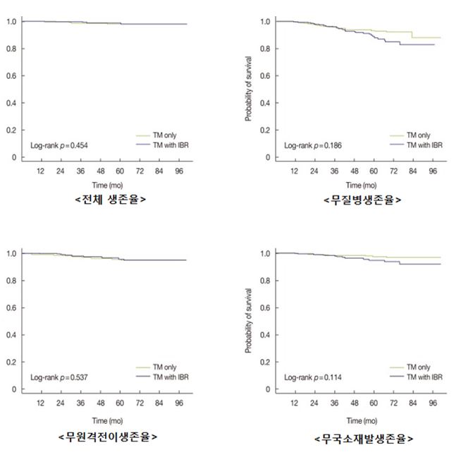 이뿐 아니라 연구팀이 그룹별 전체 생존율과 무질병생존율, 무원격전이생존율, 무국소재발생존율을 카플란-마이어(Kaplan-Meier) 생존분석에 따라 종합한 그래프도 비슷한 추세를 나타냈다.