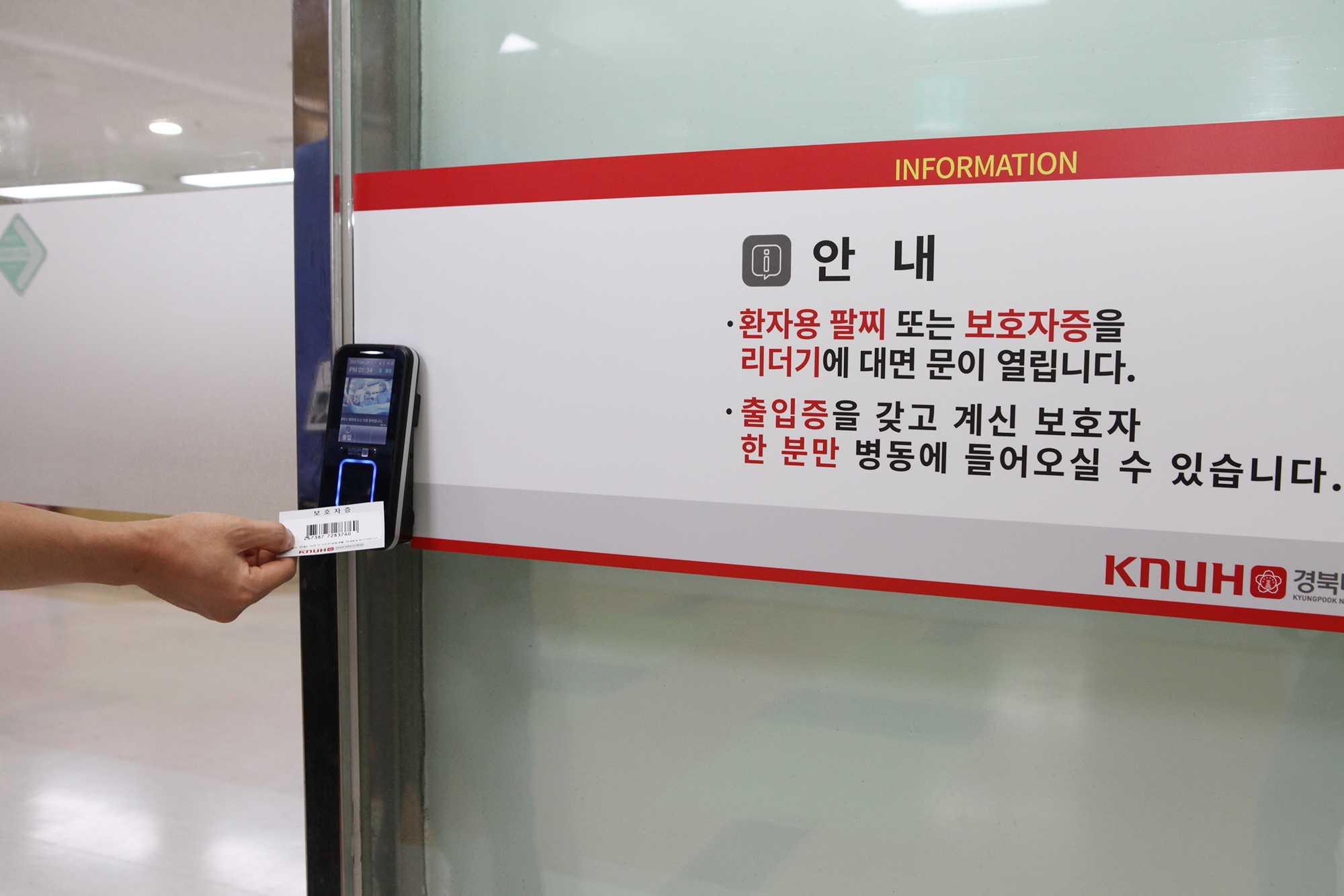 입원환자의 경우 입원 당시 환자와 보호자 1인에게 지급된 RFID 기능이 장착된 ‘출입증’을 소지한 사람만 병동 출입이 가능하게 되고, 친척이나 지인들이 병문안을 오는 경우 면회시간 내에서만 면회가 가능하며, 이때 반드시 병문안객 기록지를 작성해야 한다.