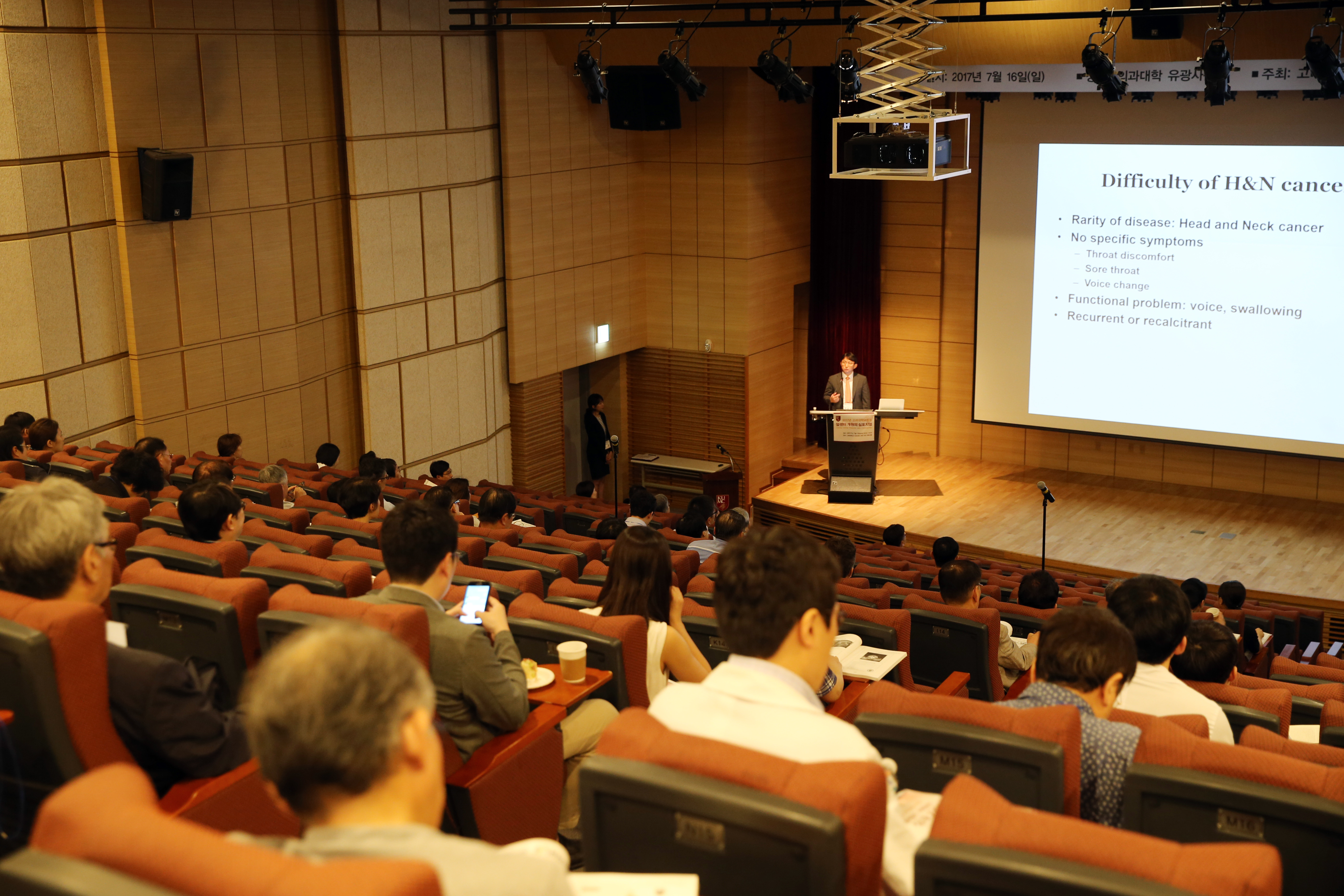 첫 번째 세션에서는 '두경부암·폐암의 최신치료'를 주제로 종양내과 신상원 교수가 좌장을 맡아 △Current Update of Head and Neck Cancer(이비인후과 백승국 교수) △폐암 수술의 전략적 접근(흉부외과 이성호 교수) △New Wave of Technology in Radiation Therapy(방사선종양학과 김철용 교수) △환자가 체험하는 유전자 기반 정밀 암치료(종양내과 김열홍 교수)의 강연이 진행돼 최신 암치료에 대한 논의가 이뤄졌다.
