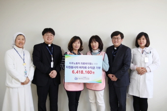 전달된 수익금 640여 만원은 인천성모병원 사회사업팀이 선정해 치료가 필요한 국제 이주 노동자에게 의료비 지원에 쓰일 계획이다.