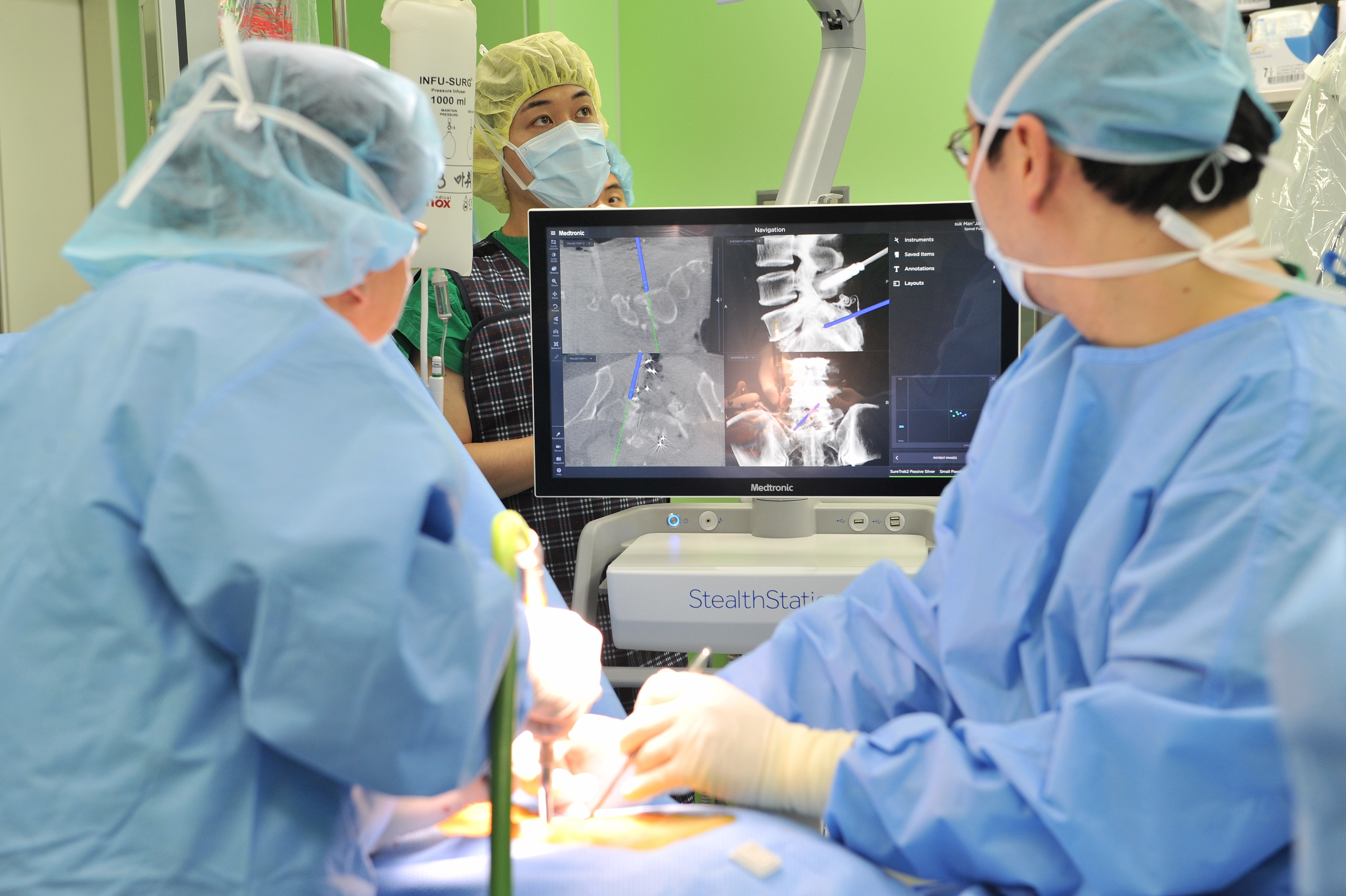 신경외과 김긍년 교수팀은 오랫동안 척추간협착증세로 허리통증과 다리가 저리고 당기는 하지방사통을 겪고 있는 60대 남성에게 O-ARM O2와 내비게이션을 활용한 수술을 시행했다. 김 교수팀은 3D 영상정보로 환부를 확인한 후, 내비게이션을 이용해 후방고정술을 정확하게 시행했다.