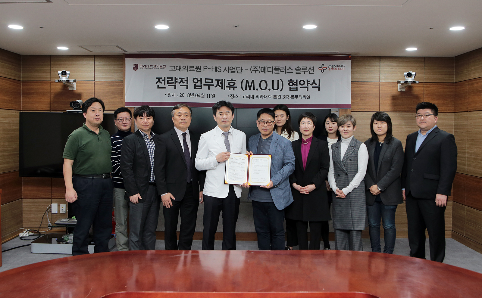 고려대학교의료원 정밀의료 병원정보시스템(P-HIS) 개발 사업단(사업단장 이상헌, 이하 “P-HIS 사업단”)과 ㈜메디플러스솔루션(대표이사 김명석)은 지난 4월 11일, 고려대학교의료원에서 환자 맞춤형 의료서비스를 제공을 목표로 하는 정밀의료 병원정보시스템(P-HIS) 개발을 위한 상호협력 협약을 체결했다.