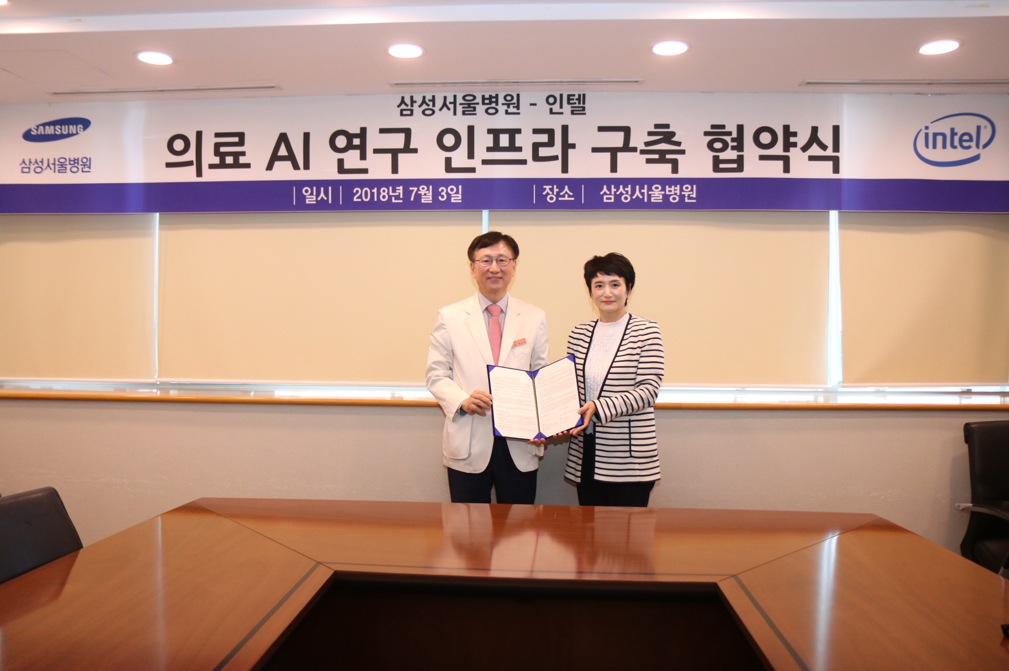 삼성서울병원과 인텔코리아가 의료 인공지능(AI) 연구 인프라 구축 및 이를 활용한 의료AI 연구를 공동으로 추진하는 전략적 업무협약(MOU)을 체결했다.