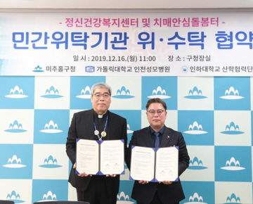 가톨릭대학교 인천성모병원(병원장 홍승모 몬시뇰)이 지난 16일 인천광역시 미추홀구청(구청장 김정식)에서 인천 미추홀구 정신건강복지센터 위탁운영 협약을 체결했다고 18일 밝혔다. 위탁 기간은 3년(2020년 1월 1일~2022년 12월 31일)이다.