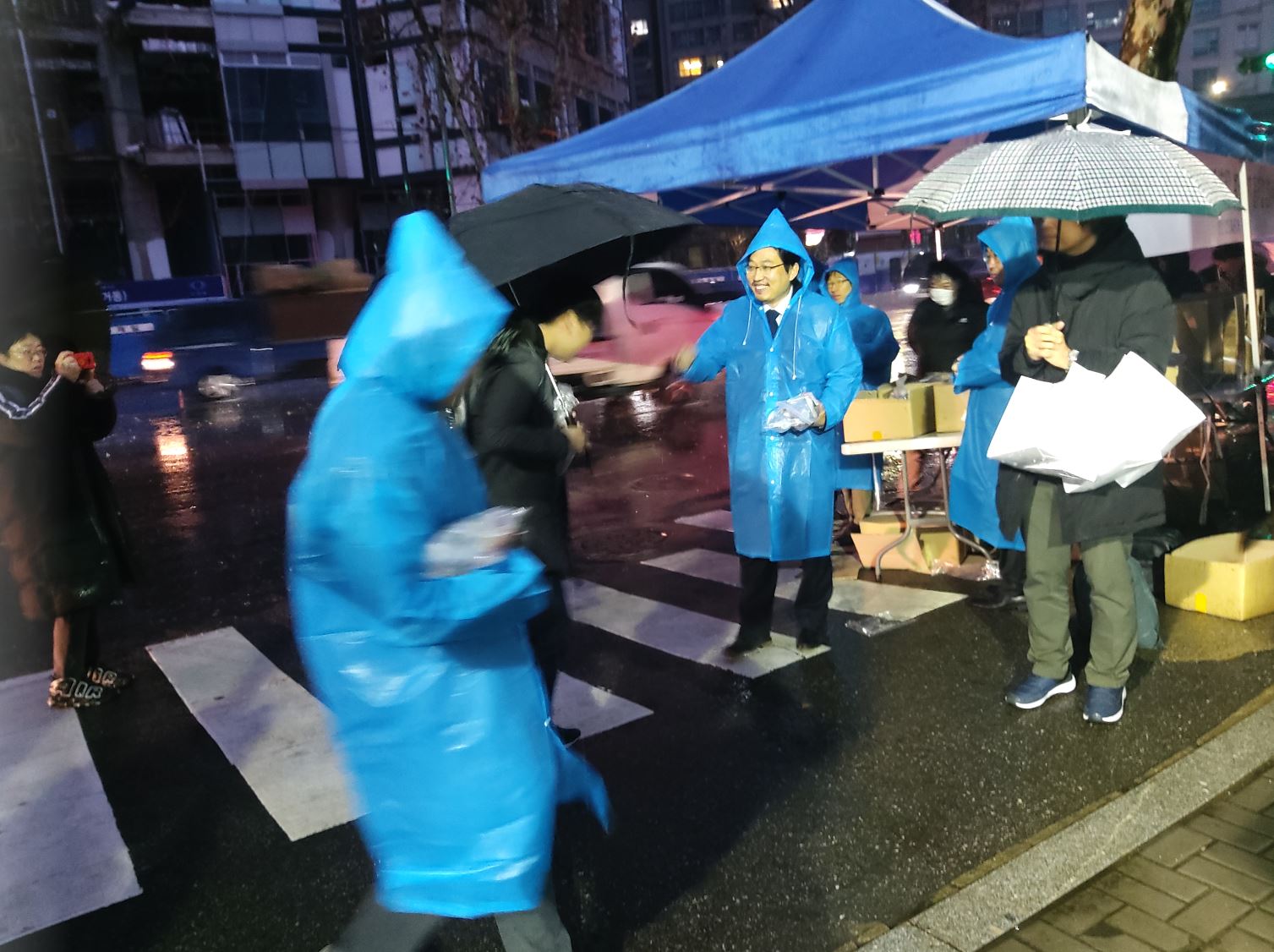 대한의사협회 최대집 회장 등 임직원들이 7일 아침 제84회 의사국가고시가 실시된 서울 용산공업고등학교를 찾아 겨울비가 내리는 궂은 날씨에 고시에 응한 수험생들을 직접 격려했다.