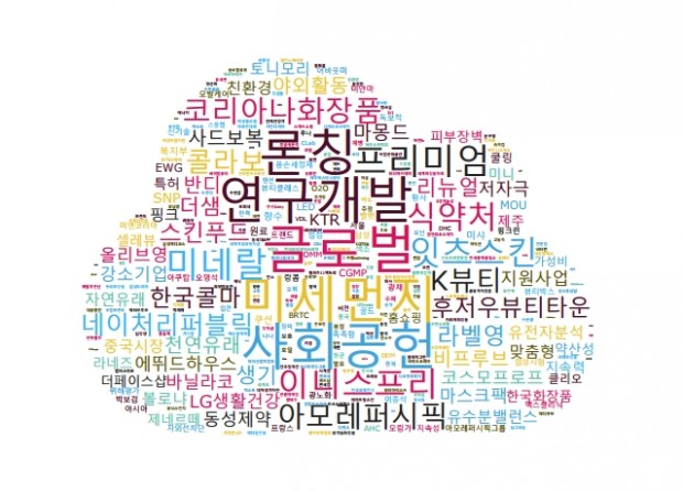 4월 이슈의 최정점에는 ‘글로벌’ ‘연구개발’ ‘K-뷰티’ 등 미래 지향적이고 역동성을 강조한 단어들이 포진했다. 중국을 대체할 시장 즉 ‘포스트 차이나’를 향한 산업의 강한 의지와 함께 자신감을 엿 볼 수 있다.
