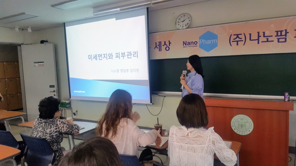 이번 82차 나노팜피부강좌 첫 강의는 나노팜 영업부 김지연 대리가 “미세먼지와 피부관리”를 주제로 강의하였다.
