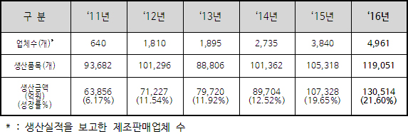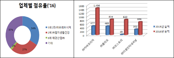 ■ 업체별 점유율 및 생산실적 증가율 높은 기업