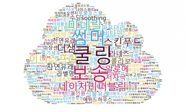미네랄과 비타민, 알로에 등의 소재가 단골 키워드로 등장했고 식물유래, 천연유래, 자연유래 등 소재의 콘셉트를 표현하는 키워드도 자주 눈에 띄었다.