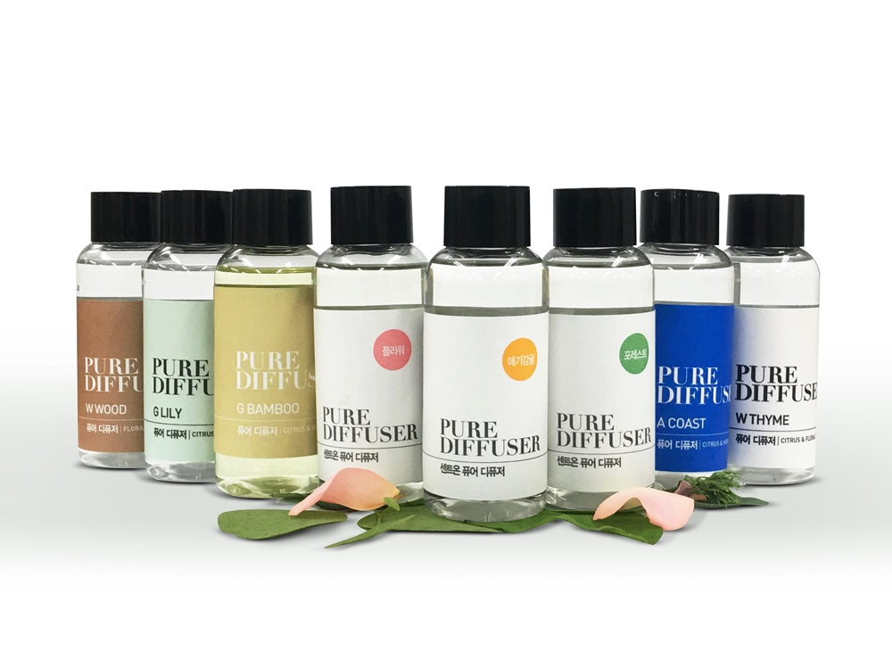 이번에 출시한 퓨어 디퓨저는 제주도 애기감귤에서 영감을 받은 ‘애기감귤향’, 맑고 깨끗한 대나무 향이 나는 ‘뱀부향’, 타임과 자스민, 장미 등의 조화로 로맨틱함을 연출하는 ‘타임향’, 이탈리아 남부 아말피 해안의 낭만을 느낄 수 있는 ‘아말피향.