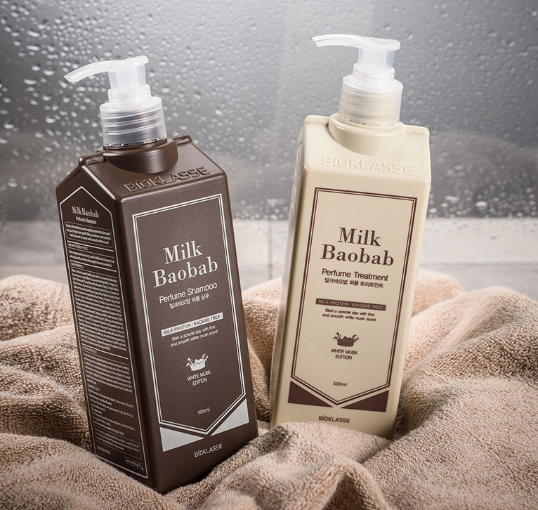 롭스에서 만나볼 수 있는 ‘밀크바오밥퍼퓸 헤어 2종’으로, 오리지널 헤어 2종에서 케라틴을 포함한 추가 성분을 넣어 극손상모케어가 가능하도록 업그레이드 된 제품이다. 큰 매니아층을 확보하고 있는 화이트머스크향을 동일하게 적용하고 향 지속력을 높였다.