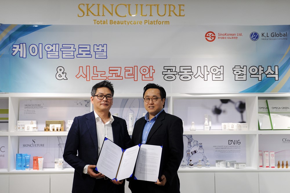k-뷰티 기능성화장품 플랫폼 스타트업인 ㈜시노코리안(대표 박영만)이 미용성형,피부미용제품 전문기업 ㈜K.L글로벌(케이엘글로벌, 대표 이창호)와 합작계약을 체결하고 중국 뷰티 시장에 본격 진출한다고 6일 발표했다.