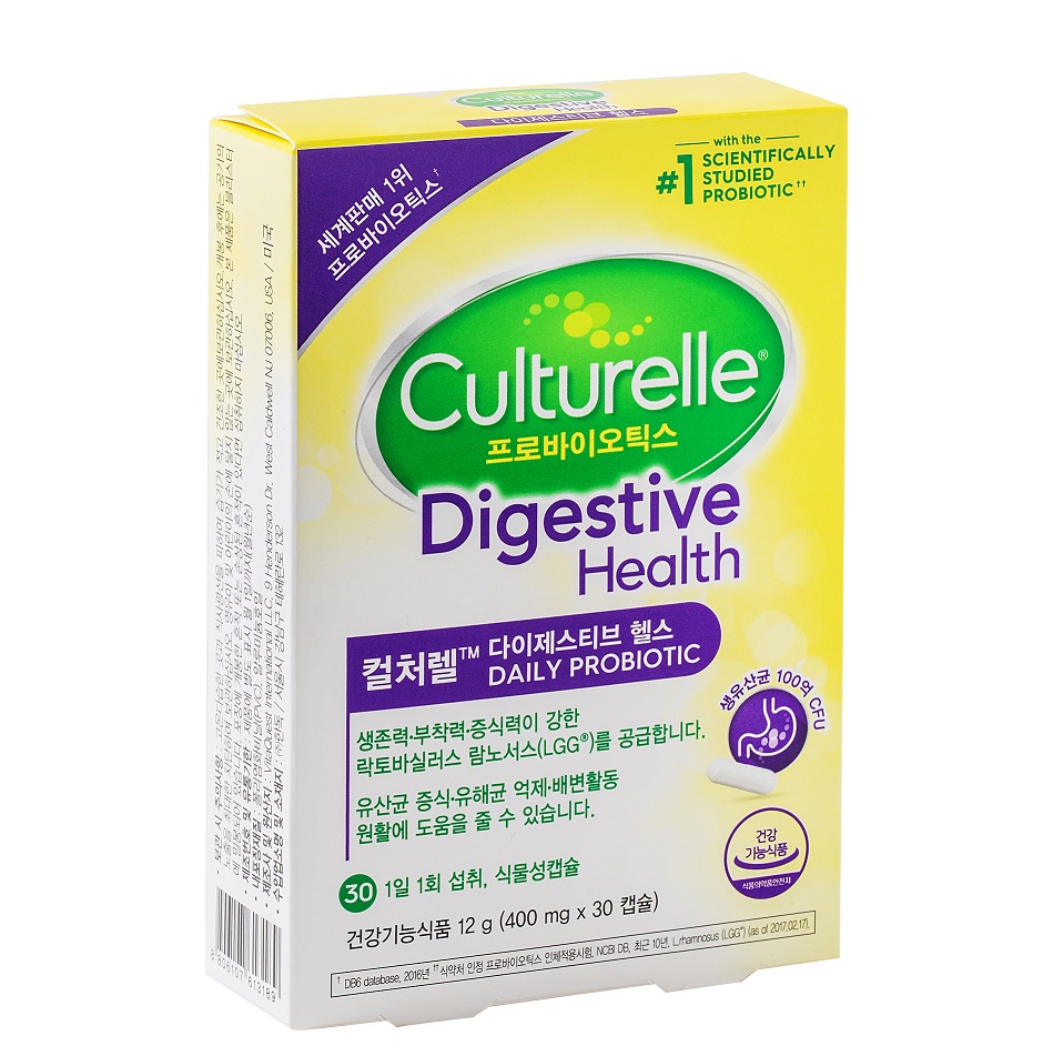 컬처렐은 최다 인체적용시험 을 통해 유해균 억제, 장벽 기능 강화, 배변시간 감소, 장내환경 개선 등 장 건강 효능이 연구된 락토바실러스 람노서스GG 단일균주를 100% 사용한 프로바이오틱스 제품이다.