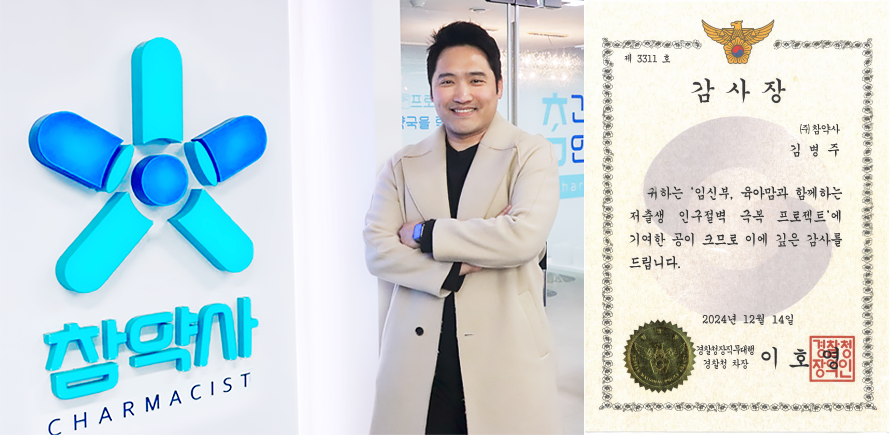 참약사 김병주 대표가 ‘저출생 인구절벽 극복 프로젝트’에 기여한 공으로 경찰청장(직무대행) 감사장을 받았다.