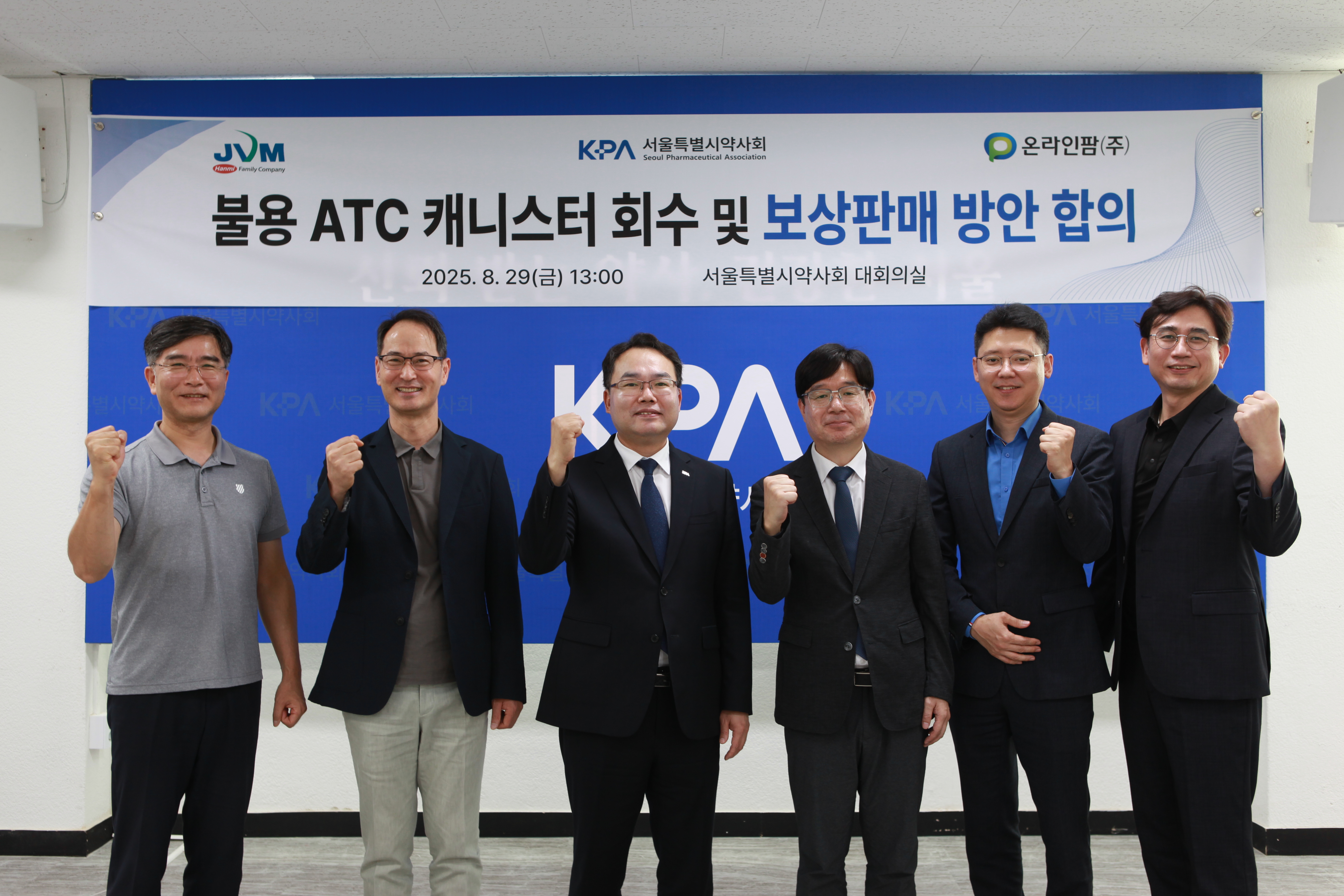 이날 김위학 회장, 위성윤 부회장, 이경보 약국이사, 강남구약사회 김형지 회장, JVM 박창영 상무, 온라인팜 진상혁 팀장이 참석했다.