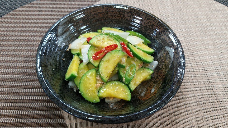 ① 애호박은 0.3㎝ 정도로 반달썰기 하여 소금에 살짝 절여 물기를 없앤다.