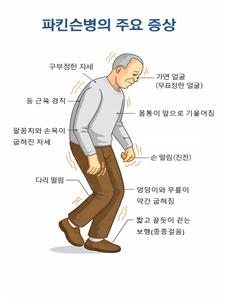 ■ 들어가는 글 손이 떨리고, 몸통은 오히려 굳으면서 마치 춤을 추듯 경직되는 질환, 바로 파킨슨병입니다. 파킨슨병은 치매라 불리는 알츠하이머 다음으로 많이 발생하는 신경퇴행성 질환이기에 주로 고령층에서 많이 발병하고, 떨림이나 복부 경직으로 인한 보행의 불편함으로 한의원에 내원하시는 경우가 많습니다. 모든 떨림 증상이 파킨슨병을 의미하는 것은 아닙니다. 그러나 본인의 의지와 무관하게 몸이 독립적인 생명체처럼 움직이거나, 반대로 움직이기를 거부하며 보행이 느려지는 상황이 지속된다면 파킨슨을 의심해 볼 수 있습니다. 파킨슨병의 대표적 증상인 떨림과 서동증(느려진 움직임), 복부의 경직과 같은 증상은 환자분들에게 큰 고통을 줍니다. 그렇다면 이러한 흔들림의 근본 원인은 무엇이며, 이 고요하지 못한 춤을 어떻게 멈추게 할 수 있을지 살펴보도록 하겠습니다.