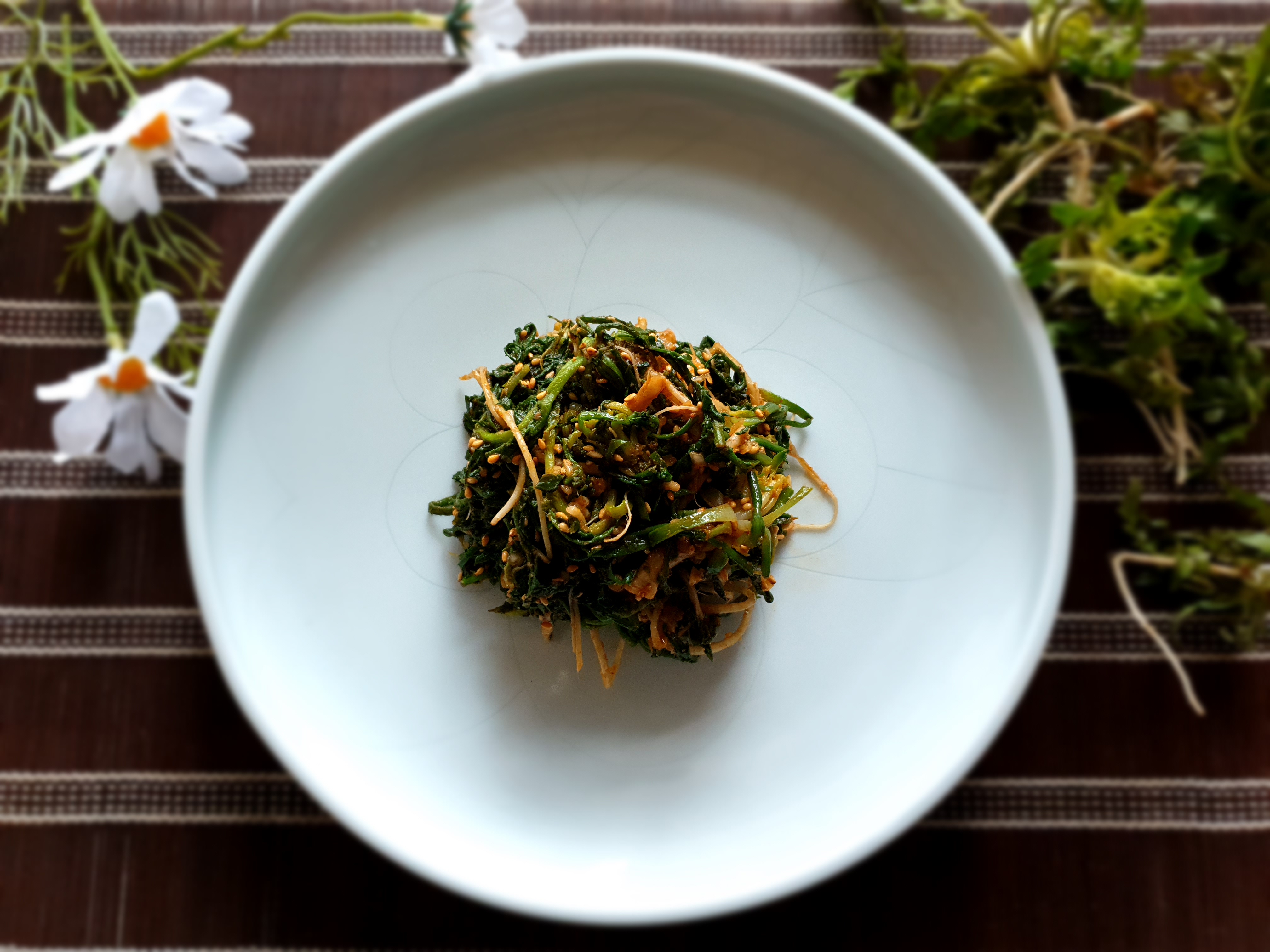 ② 분량의 양념을 잘 섞은 뒤 냉이를 조물조물 무쳐 완성한다.