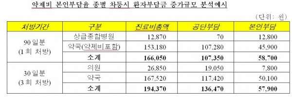 통상 상급종합병원은 90일 정도 처방하고 있고, 의원은 30일 내외의 처방을 하고 있는 현재 상황을 감안해 분석한 결과이다.