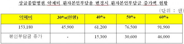 이에 따른 공단 부담금은 2만9천120원 더 증가하는 반면, 환자가 내야 하는 본인부담금은 800원 밖에 줄어들지 않는 것으로 나타났다.