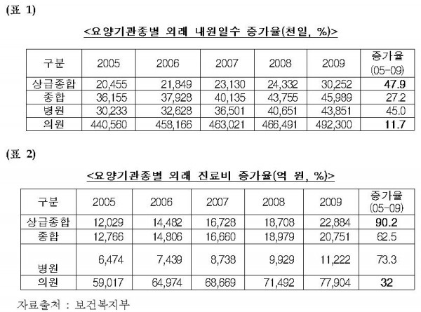 대한병원협회(회장 성상철)는 보건복지부가 외래 경증 본인부담률 조정과 관련해 제시한 참고자료를 면밀히 분석한 결과, 지난 2005년부터 2009년까지 5년 동안 상급종합병원 외래의 경우 48% 환자증가가 있었고, 그에 따라 외래 진료비는 90.2% 증가한 것으로 나타났다.