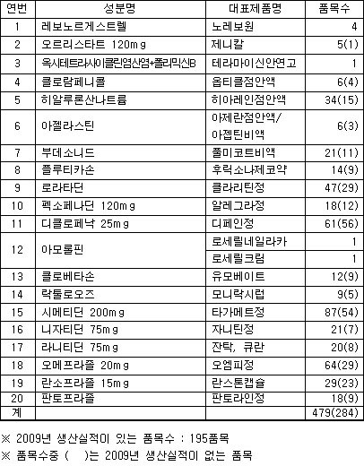 리스트는 20개 성분 470여개 품목이 담겨 있으며, 여기에는 응급피임약인 노레보와 함께 비만치료제인 제니칼, 잔탁과 큐란 등이 포함됐다.