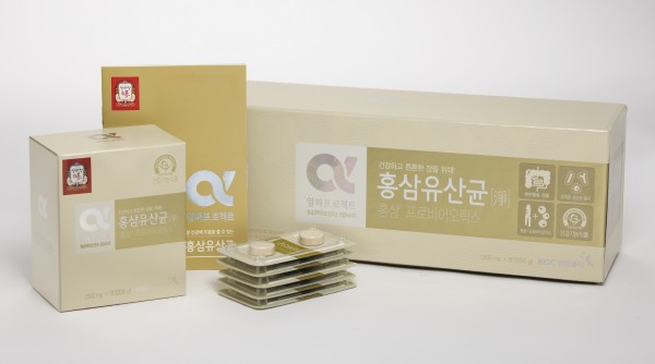 '홍삼유산균'은 건강하고 튼튼한 장 만들기에 도움을 주는 제품으로 정관장의 홍삼분말을 비롯해 특허 받은 유산균을 포함한 총 7종의 유산균을 씹어 먹는 정제로 만들었다.