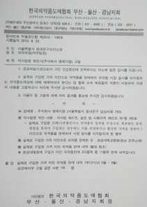 부울경 도협은 약사법 제47조 시행규칙 제62조1항의 실제 구입한 가격미만으로 의약품을 판매해 시장 질서를 어지럽힌 서울 동대문구 소재 M도매상을 고발했다.