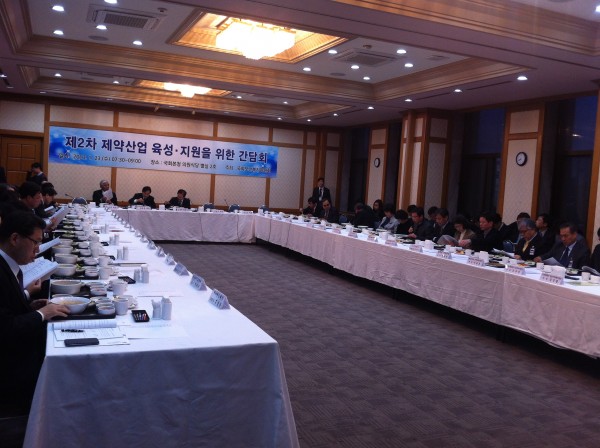 이날 간담회는 제약산업의 글로벌 육성 방안을 위해 지원 방향과 제약업계의 애로, 건의사항을 듣기 위한 자리로 마련, 국회 보건복지위원, 각 관련부처 실무담당자(보건복지부, 교육과학기술부, 지식경제부), 제약업계CEO 등 20여명이 참석했다.