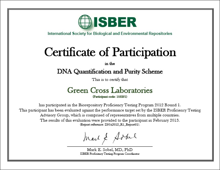 이번 프로그램에서는 전세계 32개 기관이 참여했으며, 녹십자의료재단이 DNA자원의 농도 및 순도 측정 면에서 우수한 성적으로 인증을 획득하며 높은 기술 수준을 세계적으로 알렸다.