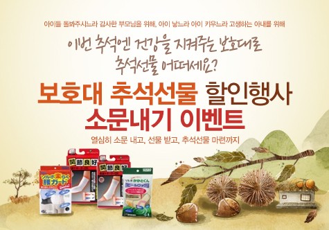 다음달 1일부터 10일까지는 보령수앤수 쇼핑몰(http://shop.isoonsoo.co.kr/)에서 부모님을 위한 무릎, 발목, 손목 관절 보호대, 산모를 위한 골반, 관절 보호대 등의 제품을 최대 30%까지 할인 판매한다. 이와 함께 진행되는 소문내기 이벤트 참가자에게는 추첨을 통해 상품을 증정할 예정이다.