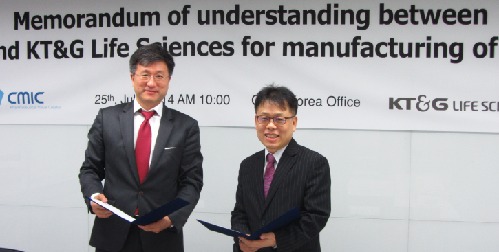 위탁연구기업으로 국내에서도 잘 알려진 CMIC Holdings(한국법인 CMIC Korea(대표:송승우))가 KT&G 생명과학(대표 전용관)과 CMO(위탁생산) 사업을 진행한다.