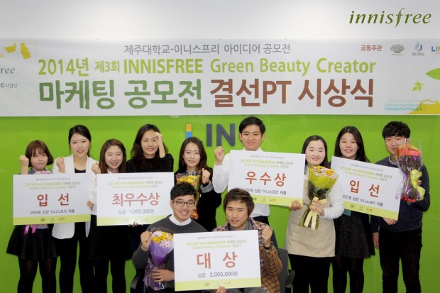 자연주의 화장품 브랜드 이니스프리(대표 안세홍)가 지난 3일 제주대학교 및 제주대학교 LINC사업단(단장 이상백 교수)과 공동으로 개최한 ‘제주대 그린 뷰티 크리에이터 마케팅 공모전’의 최종 발표회 및 시상식을 진행했다고 밝혔다.