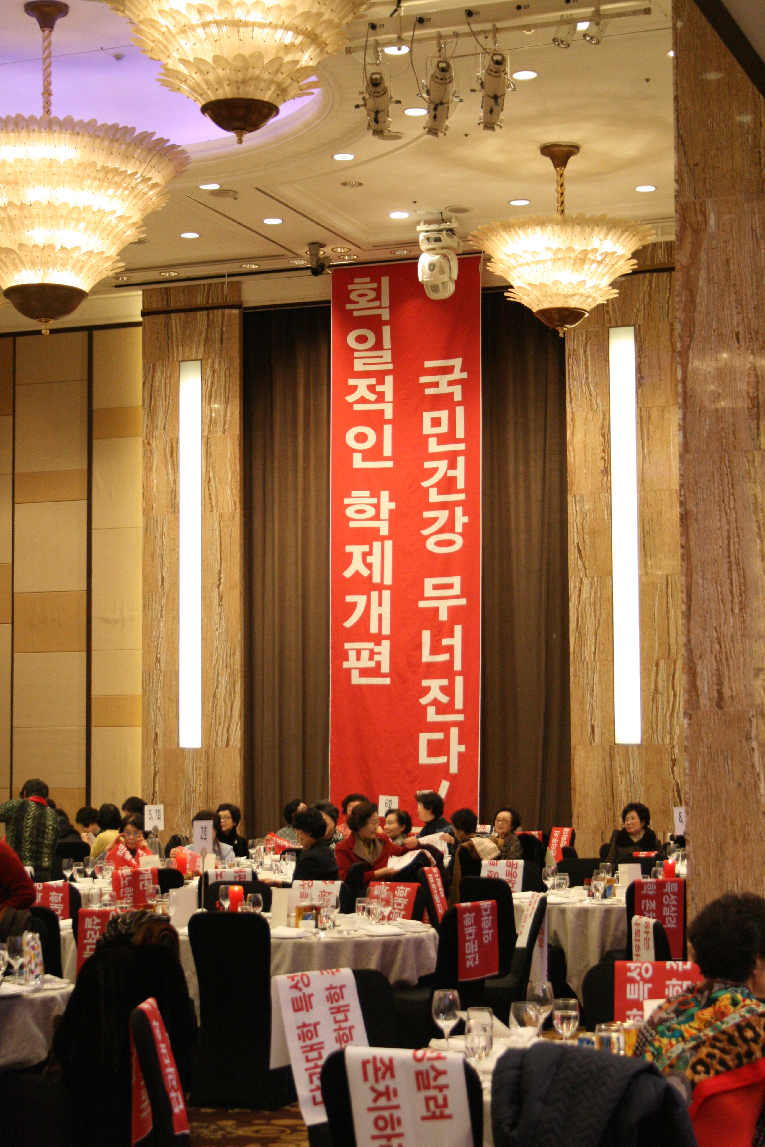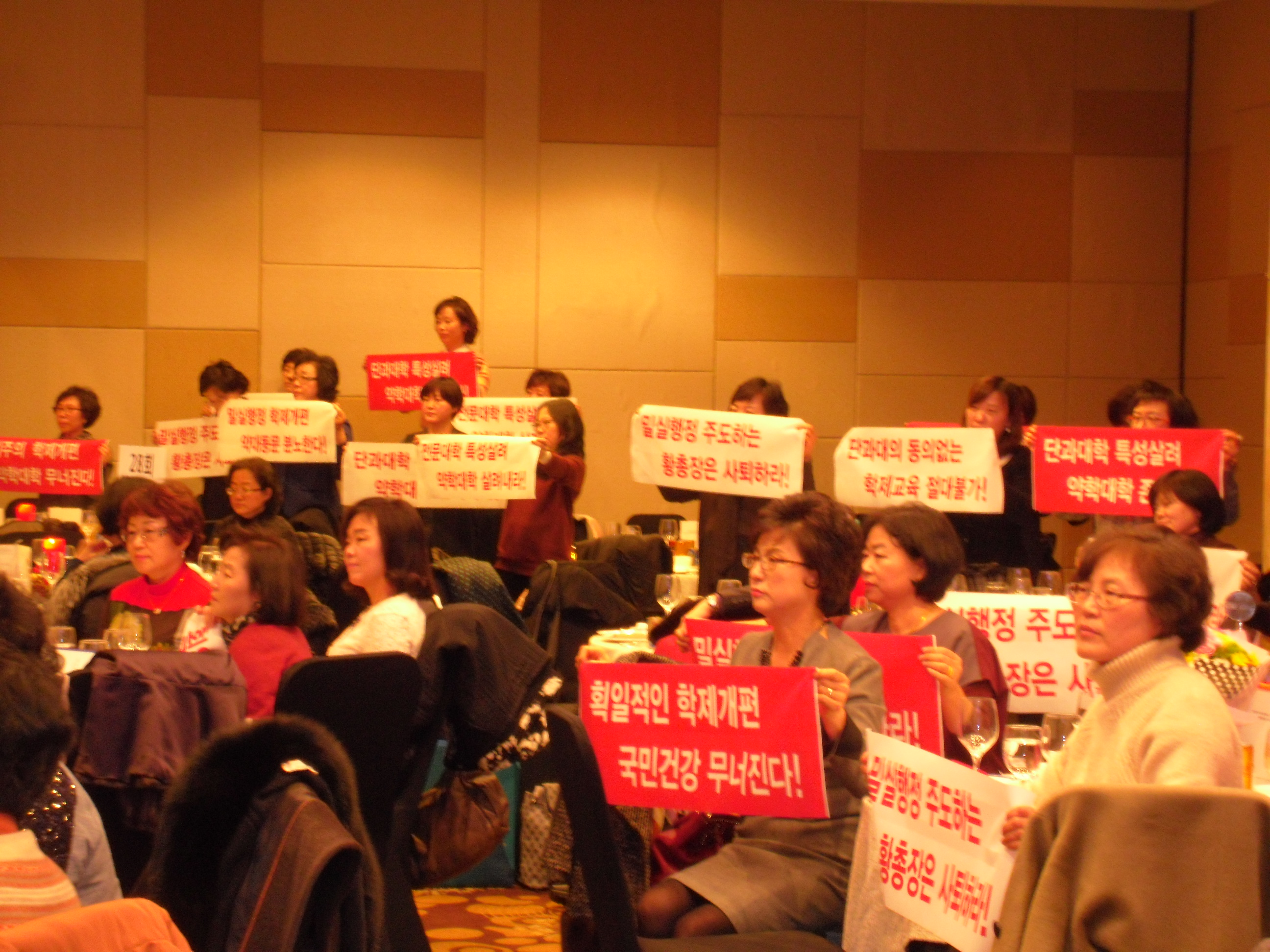 7일 저녁 서울 중구 밀레니엄서울힐튼호텔에서 진행된 숙명여대약학대학동문회의 '동문 재회의 날' 행사는 최근 불거진 약학대학의 이공계열 편입과 관련한 성토의 자리가 됐다.