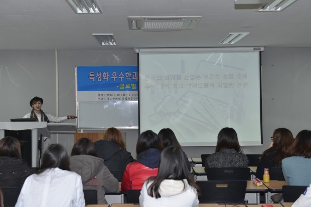 대구한의대학교(총장 변창훈) 화장품약리학과(학과장 김태훈)는 지난 12~14일 3일간 오성캠퍼스 미래관 강의실에서 중국 화장품전문기업 YSM 박미송 부총경리(부사장)와 남연 부총경리를 초청, ‘중국 화장품시장과 화장품산업 관련 마케팅전략’이라는 주제로 강연을 실시했다.