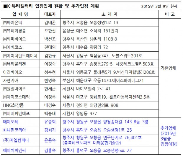 이를 위해 충북도는 지난 2월 24일 K-뷰티갤러리 입점업체 13개 업체 대표와 함께 청주공항 및 라마다 호텔 면세점 매장을 방문해 업체별 제품 샘플을 평가 하는 등 구체적인 입점절차 등을 논의했다.