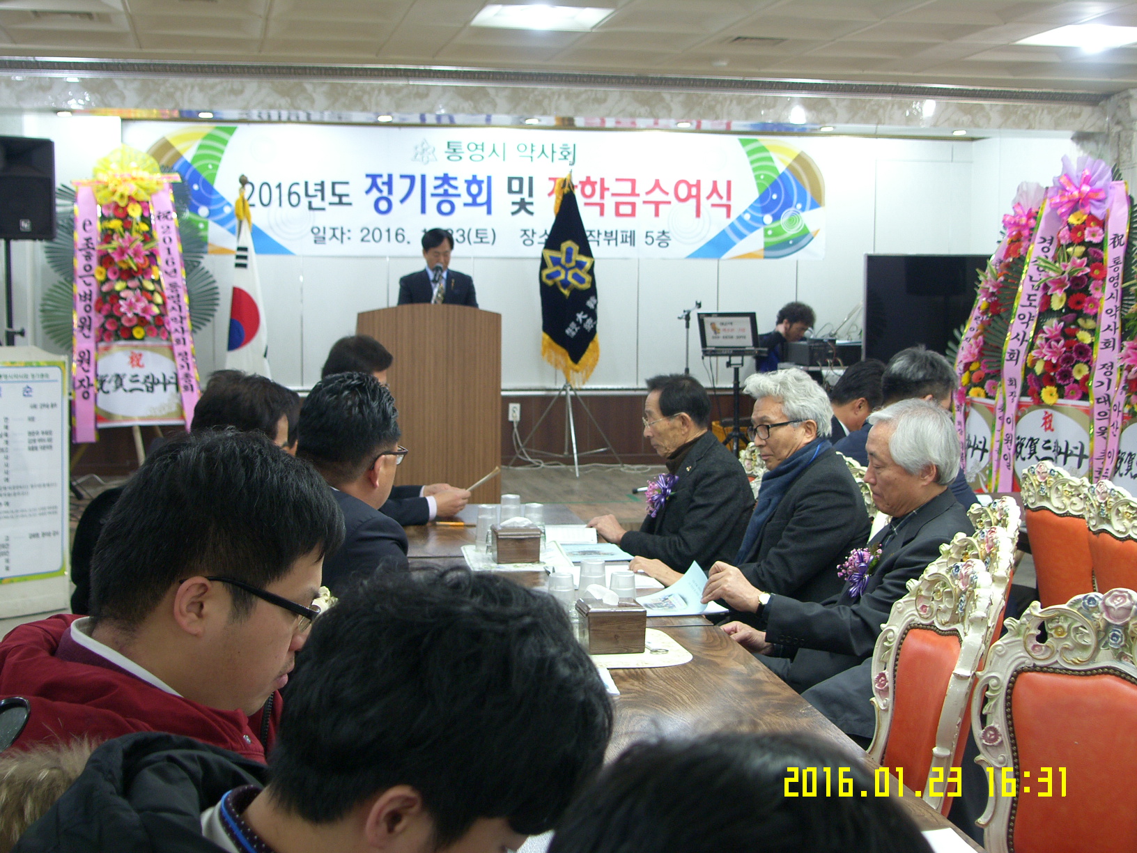 경남 통영시 약사회는 지난 23일 오후 4시 북신동 소재 공작뷔페 5층에서 2016년도 정기총회를 개최하여 지난해 12월 29일 임시 총회에서 선출한 새 임원진의 취임식을 가졌다.