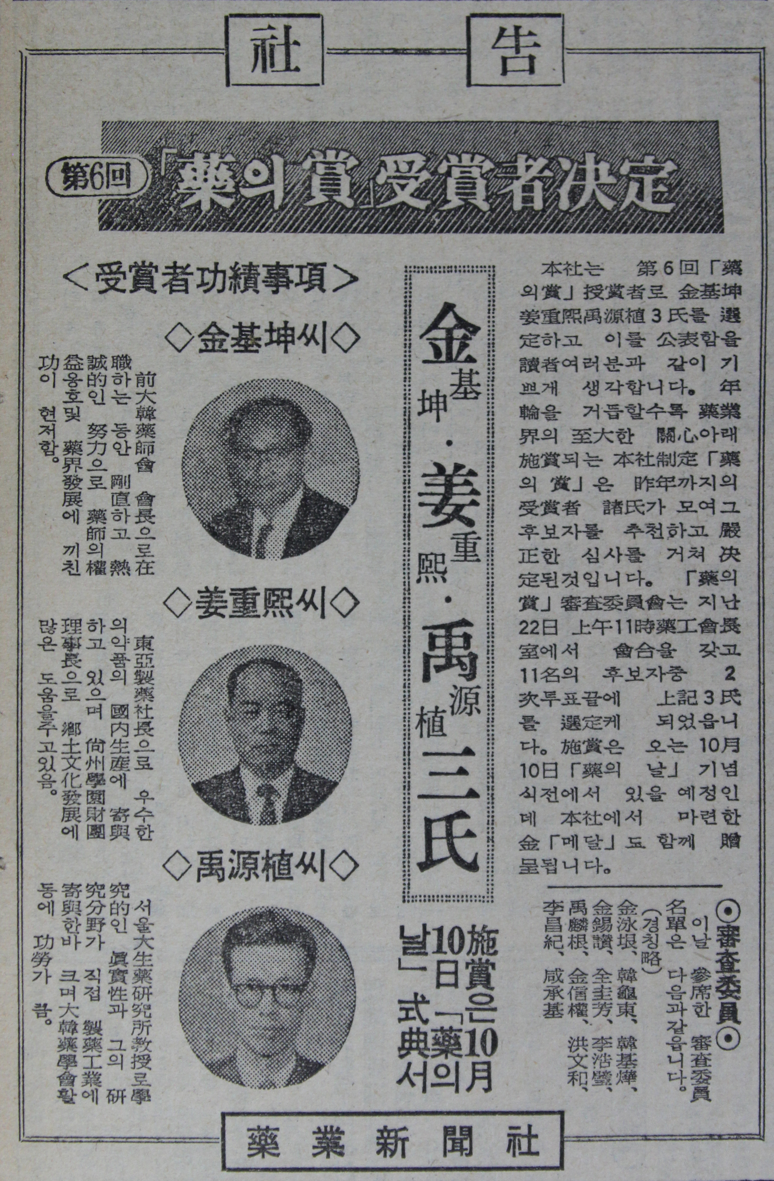 또한 1954년 한국제약협회의 전신인 대한약품공업협회 부회장을 맡은 데 이어 1967~1975년에는 회장에 취임해 8년 동안 연임하면서 한국 제약산업의 성장‧발전을 위해 헌신했다. 기업의 사회봉사라는 신념에도 투철해 1964년 학교법인 상주학원을 출범시키면서 고향에 상주고등학교를 설립, 후진양성과 육영사업에도 정성을 쏟았다.